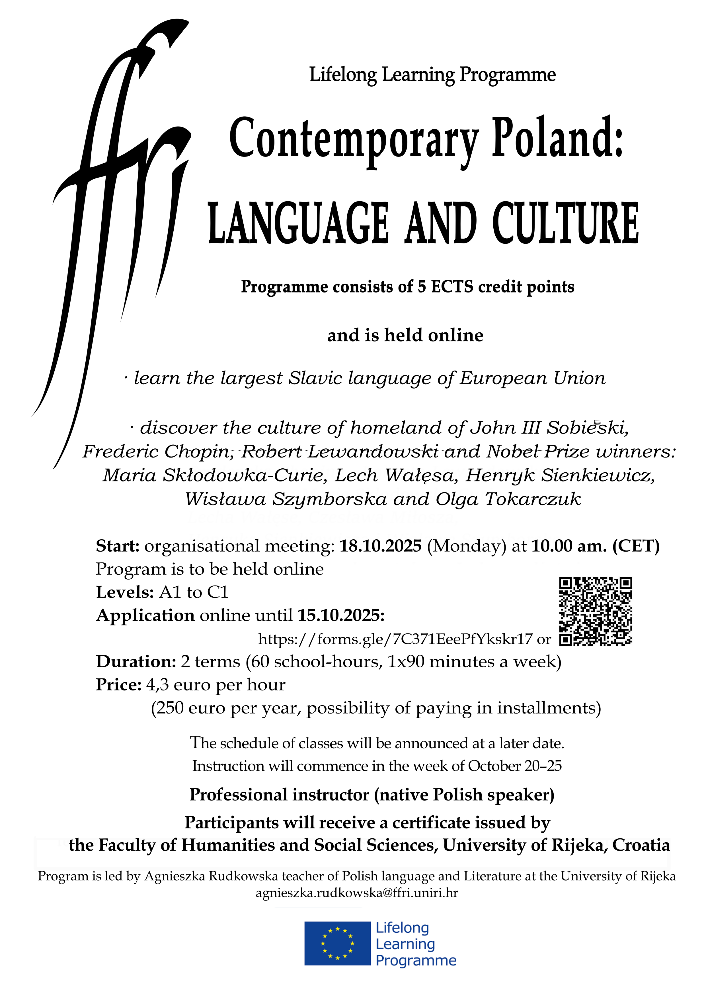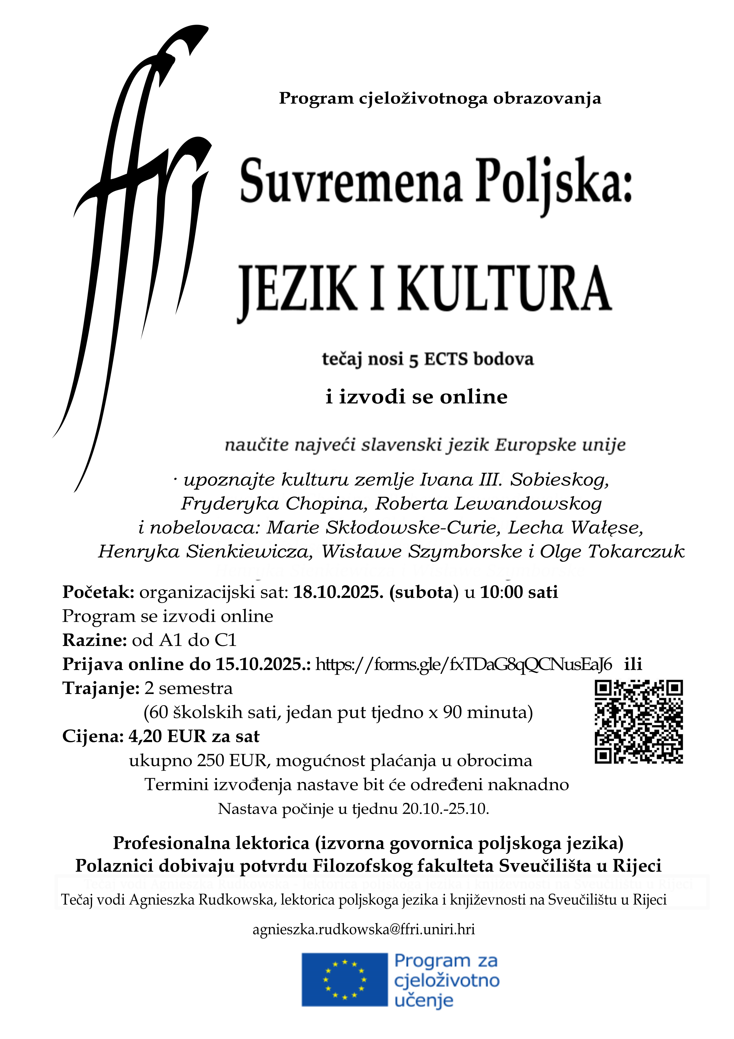 Online tečaj poljskog jezika na FFRI u Rijeci - poziv i informacije